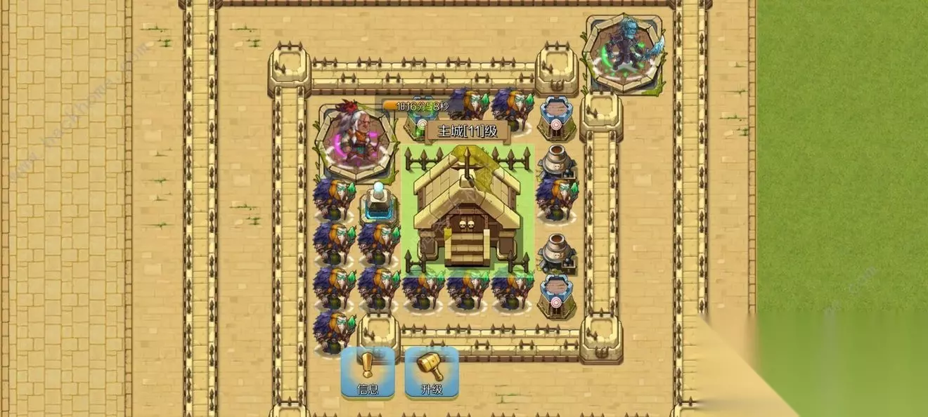 1。兑换码置顶,不定时更新(sorry321,miling6776,tr1086) 2。开局 首先刷开局(清除数据即可,目前无账号),想刷开局的可以直接开局升2主城(升级主城会导致怪物刷新自己斟酌),然后建酒馆免费一次金(好评兑换码也有一个金)金是有几率一次出10个金碎片的,当然也不必强求,即使开局金也难以得到材料提升。 3。氪金与花费 代金券该怎么花,长久玩钻石月卡和金币月卡必备,其余看自身需求(英雄上场上限为3提前考虑好阵容思路,材料是十分稀少的,难以做到给养多个)。特权等级升到5级/8级即可,5级开启战斗2倍速,8级每日领金色碎片。每升级到一个阶段的特权等级要记得领奖励,不要一次升太多级。 怎么得代金券,每20分钟左右会生成障碍,清除可得到藏宝图,使用藏宝图有平均40%+概率得到,每日任务,活动,兑换码等等也可以得到。如果觉得游戏真的好玩也可以赞助作者。 4。主城与周围怪 每次升级主城后周围所有的怪都会刷新满,所以升级前最好把怪刷干净。同时主城升级会导致地图扩大。 主城等级影响保留的周围怪物上限。召唤怪的书最好保留到后期再开,收益最大化,推图波数也影响装备等级。 进入战役选项再退出可以刷新周围怪物种类,从而避战部分难缠怪物。 早晚八点都会刷新幽魂怪,打过了会掉落符文提供8小时额外属性加成。 5。怪物攻击机制与布阵基础 怪物刷出来后,首先攻击最近目标,如果有防御塔(兵)攻击怪物,怪物就会走过去攻击防御塔(兵),如果无路可进(路被城墙挡住了),怪物就会随机开路。 飞行怪除外,飞行怪推荐使用多余建筑放置对应位置上达到聚怪然后以范围技能击杀最优。因此通常阵型的基础为:中间主城,四周塔(兵)攻击范围覆盖吸引怪物仇恨,开一个入口,尽量延长怪物路线。根据需求在四周安置聚怪建筑。举例,先将多余建筑(铁匠铺圣碑一类)列于四角聚怪,只要不输这种建筑损耗不会有任何影响,主城放置于中央,主城周围安排一圈远程1-3排(取决于使用的远程攻距),穿插防御塔达到攻击范围覆盖(无法覆盖会导致怪物破门而入)一周从而吸引怪物仇恨,再向外以城墙和各种单个位置建筑(金矿农场等)组成包裹,规划出怪物行进路线(越长越好,但是行进路线一定要在塔/兵攻击范围内,不然长的没有意义)。