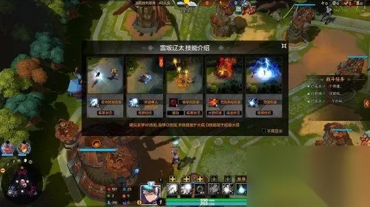 《忍者村大战2》开局会跳出提示,玩家可以查看自己所用忍者的核心技能,而且可以点击一键出装,系统会自动根据你的金钱来为了推送最合适的出装,连技能也可以点击一键推荐,会自动帮你加点,已经是一款对新手非常友好的MOBA了。
