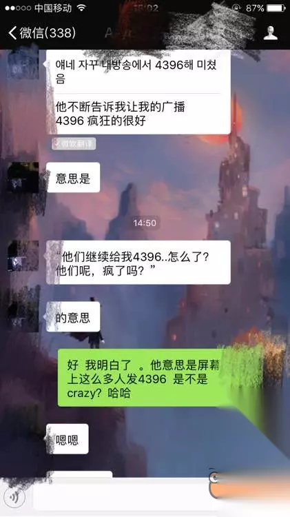 而围观的观众因为看不懂韩文交流纷纷猜测起了Pawn是如何回复Marin的,更有网友替Pawn回复到我腰疼! 随后终于有人晒出了两人聊天的真相。