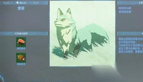 兽肉:可以从森林野猪、黑背山羊、平原狐这里获取。