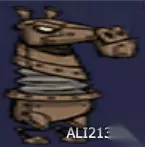 掉落:蓝色象鼻*1,肉*8、便便*1(周期产生)。 特殊能力:无 介绍:在冬季沿着动物足迹寻找有可能找到冬考拉象(另外两种是座狼和钢羊),在被攻击之前,会一直保持躲避玩家的状态。它和皮弗娄牛一样会周期性掉落便便。击杀后掉落的蓝色象鼻是制作寒冬背心的必要材料。可以用围墙围起,在必要的时候击杀取肉。 发条骑士