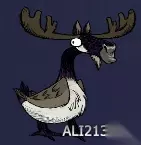 主动攻击玩家 掉落:肉*6,鸡腿*2,羽毛*3-5。 特殊能力:尖叫使得武器掉落。 介绍:鹿角鹅是春季BOSS,在进入春天的2-4天出现(前提是至少有3个建筑在靠近的位置,比如科学机器、避雷针、烹煮锅等),在夏季到达时会离开。到达约一天后会生成鹿角鹅蛋,孵化出5只莫斯林,莫斯林不会成长为鹿角鹅。注意如果青蛙雨的青蛙攻击了莫斯林可能会产生另一只鹿角鹅。鹿角鹅不会破坏玩家的建筑,除了墙。鹿角鹅只会近程攻击(攻击生物时攻击力为150),每到第三次攻击就会让玩家的武器掉落在附近地上。可以把鹿角鹅吸引到皮弗娄牛处或者青蛙雨处击杀。如果自己动手打的话带上武器防具注意躲避攻击也是可以击杀的。 莫斯林