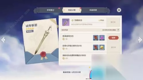 矿场荒废已久,终于带着忐忑之心激活了《星之归还》活动,界面如下所示。 活动内容分为三大部分: 1、岁时累记 提供400原石与两个树脂——看来米哈游慷慨赠送了两次机会,似乎还算大度。 2、归还之路 在短短七日内完成一系列任务,赠送一柄试做斩岩——实际上,新手任务中已包含此物,却无角色可用,再赠一柄似乎毫无意义。或许赠送两个相遇之缘更佳?然而,宣传文案之拙劣令人啼笑皆非,难道是在还我一柄剑?如此低劣的玩笑,实在令人无法恭维。