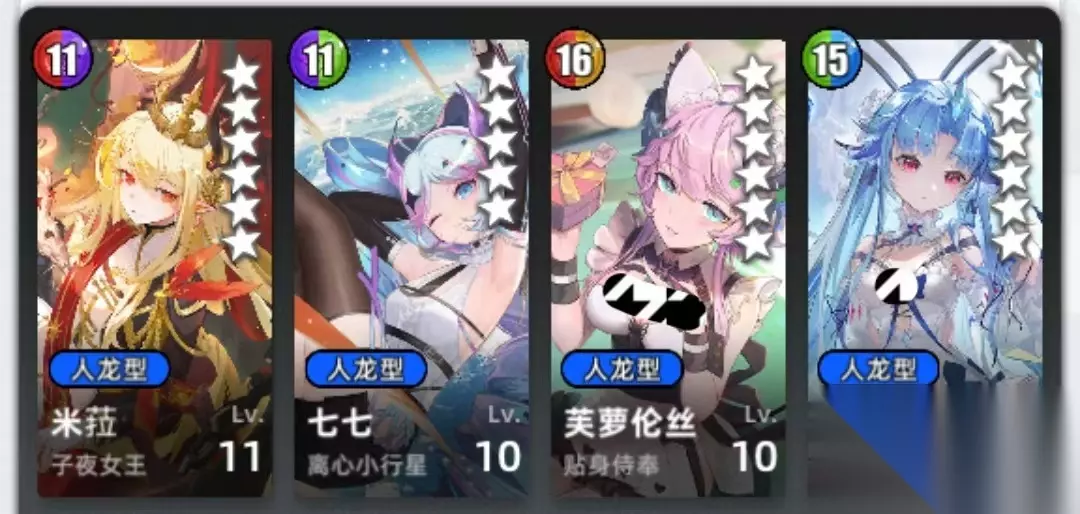 子夜米菈和小行星七七是游戏早期经典的恐吞二人组(可以和上两张对比细微区别),尽管七七的30概率不如另外一张临界次元斩的40吞,但因为其能量低,附带封灵和隐匿效果,往往是更好的选择(也可以都上)。34号位这两张是我之前玩的时候用起来比较丝滑的搭配,可以换。