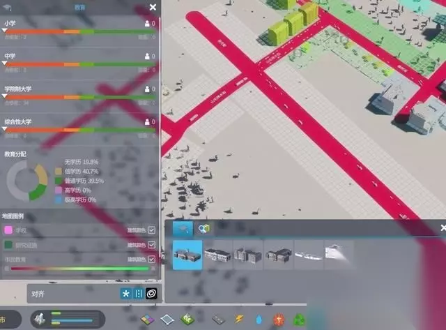 教育机构 基础的教育机构需要通过城市升级解锁,点击此界面即可查看周边居民的受教育程度。