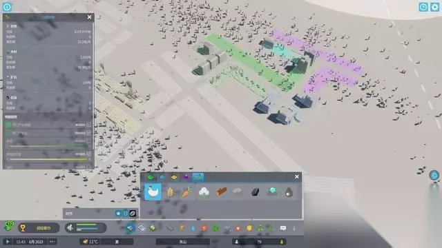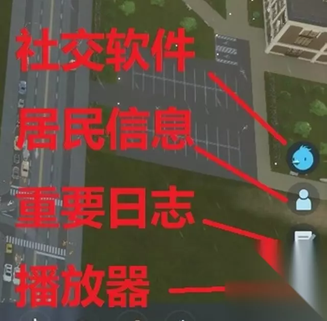 ④交互与通知 右下角是各项交互与通知按钮: 社交软件――查看部分居民的需求 居民信息――查看居民的生老病死等。 重要日志――通常只有在天灾人祸发生时才会提示。 播放器――听听天际线主题的广播节目,可以“切换频道”。