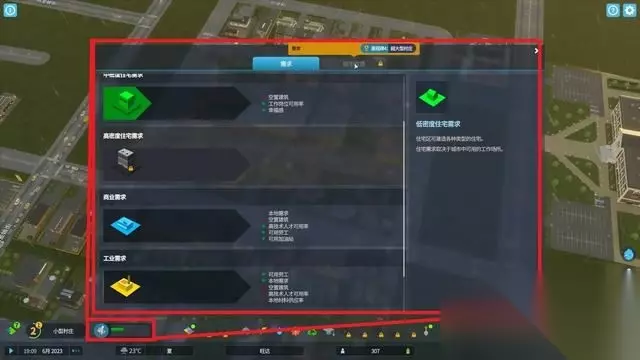 在需求页面可以查看居民当前对各项设施的需求,也能确认当前状态对城市各项属性、资源的加成。