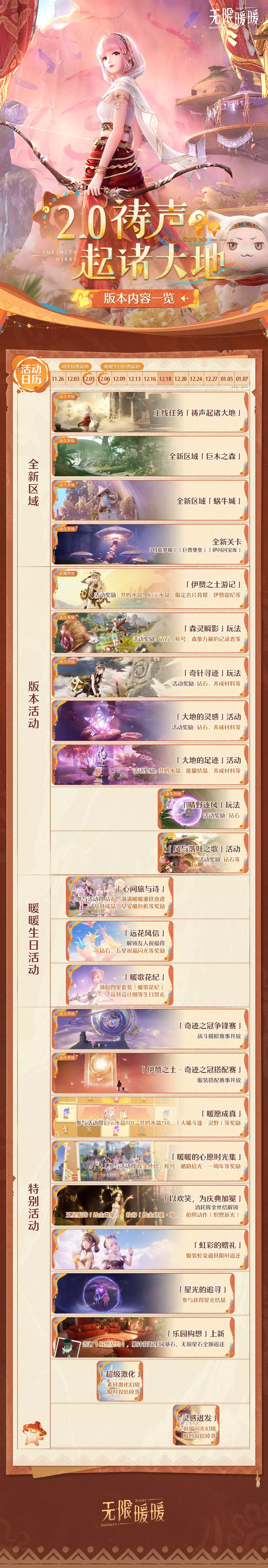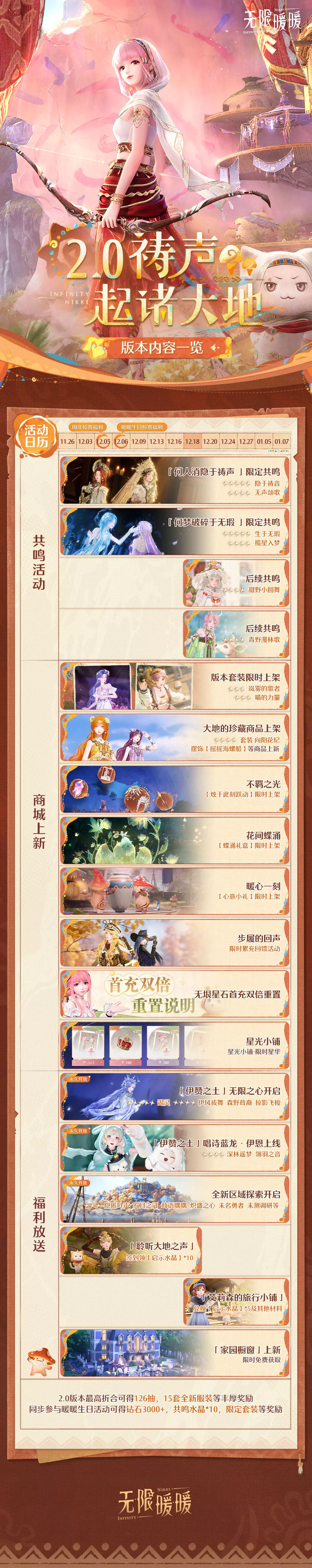 向搭配师们递上目前2.0版本的爆料内容,带大家全面了解2.0版本的活动、共鸣、福利资讯!