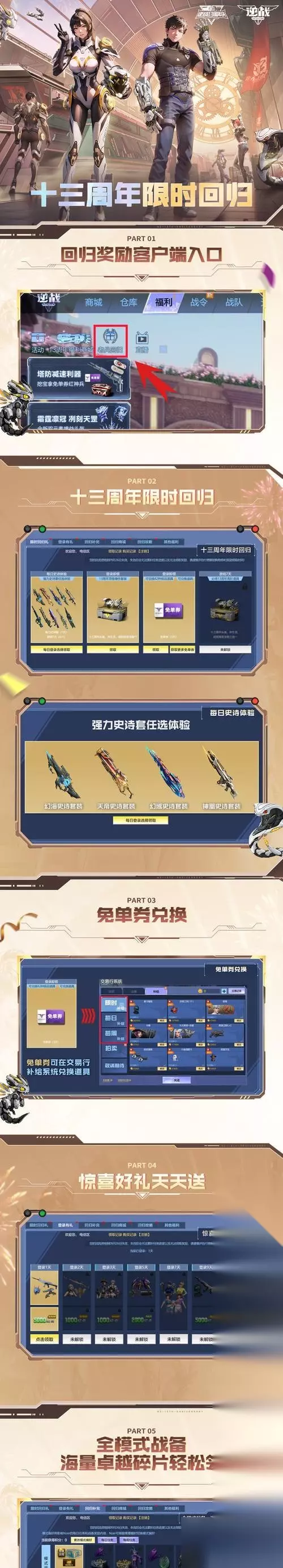 回归全能卡的获取途径 回归全能卡一般通过特定的游戏活动、游戏内的抽奖、以及官方推广活动获得。玩家需要密切关注逆战官方公告或通过官方渠道了解获得回归全能卡的最新信息。