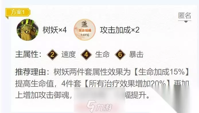 一、阴阳师萤草御魂搭配推荐 方案一:树妖×4,攻击×2 御魂位置: 2号位:速度 4号位:生命 6号位:暴击 解析:树妖两件套四件套的效果可以大幅提升奶量和血量,加上两个攻击,拉满治疗。