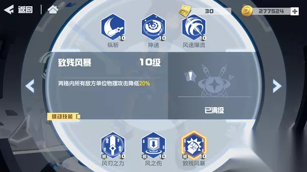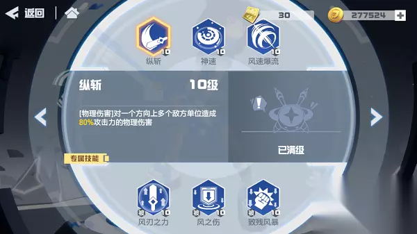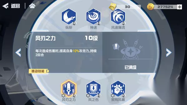 ▶被动技能:风刃之力 每次造成伤害时,提高自身1%(10%)攻击力,持续2回合 解锁要求:30级