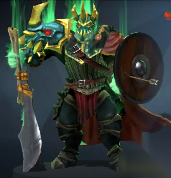 骷髅王这个英雄小编是真的不想看到他残念的脸,所以头饰一定要能把脸挡住。V社估计也知道骷髅王的脸有多丑,出了不少这样的饰品。例如怨念套、孤儿套,说错了是孤王套、幽冥领主套、黑暗泉涌套。这里用的是冥魂领主头盔,护肩和副手都用冥魂领主套了。因为没有不朽副手的加持,骷髅王的副手总是感觉空唠唠的,所以武器选择了残破剑盾。当然你也可以选择圣者遗物、劈脊之剑等其他武器。价钱其实也就差个几毛钱,看个人喜好。披风选择了亡者复生披风,曾经骷髅王的顶配披风,价格不菲,虽然现在已经白菜价了。从饰品的纹理细节来看的确不如后出的幽冥领主斗篷,但是胜在穿戴上这个披风后披风总是随风飘起。那种随风飘扬的感觉再加上模型比较大所带来的效果是其他披风所没有的。