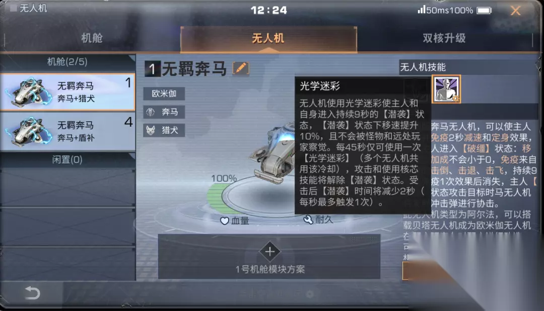 了解了【无羁奔马】的特性后 如何组装欧米伽无人机才能发挥最大威力 明明推荐 【无羁奔马】无人机与【潜袭猎犬】无人机 或【盾甲金牛】无人机双核升级 组成欧米伽无人机