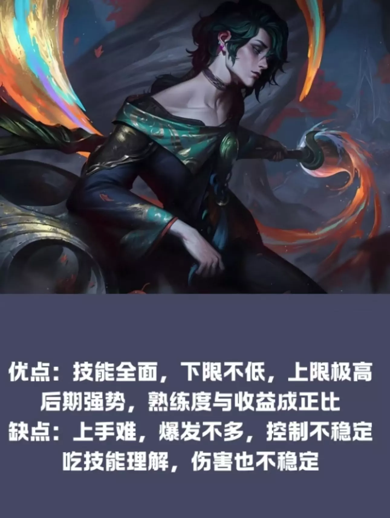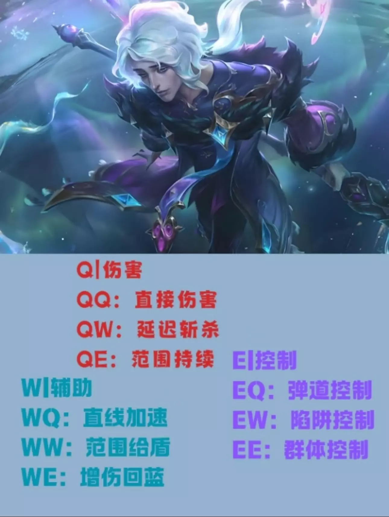 🎨一个玩起来很复杂但是很帅的英雄,无论是技能组还是技能效果都能强大,但是可能机制稍微复杂,今天就来一个慧技能全方面讲解(我用来玩辅助位置) . ✅技能解析 . ✅被动|落款 连续两个技能打到对面身上就会在敌人脚下触发一个延迟的伤害,会被移速高的敌人走出去 . ✅Q|主题:灾 QQ当成卡尔玛的q就行,会被小兵抵挡 QW乌鸦的w但是距离比较短 QE兰博大招缩减版 . ✅W|主题:靖 WQ直线加速(大乔的一技能) WW地上一个圆形走进去会有范围护盾 WE没减速会回蓝的娜美e . ✅E|主题:悚 EQ自带恐惧的火男q EW走进去会有禁锢的拉克丝E EE一个远距离的万豪E . ✅R|焚心绚华绘 扔出去一个直线的球,接触到敌人会慢慢扩大范围同时造成减速 . 🎨慧的技能就是这些,更多的是看重团战技能的思路 💡几个常用连招思路 1️⃣EQ+QQ对面突脸的一个小爆发,打妖姬一般很好用 2️⃣EW+QW一般用于压塔,对面吃塔刀,放在塔下消耗 3️⃣QE+EE这个适合用于团战对面很多近战开团,打大范围aoe . 💡技能小技巧 1️⃣QQ对面半血以上比较痛 2️⃣QW半血以下比较痛,QW打单体或者是被控制目标更痛 3️⃣别傻愣愣的开we走对面脸,可以在连招中间穿插,跟娜美的e一样,持续伤害就算打出去了也能触发效果 4️⃣R技能有一个持续减速,减速持续成长,一般是R减速最大化衔接QW(🙋这里有个诀窍,R完之后默念三秒一般是R减速最大化,可以去训练营试试) . 🏡选用场景🏡 🙋慧是经典的下限不低上限更高的英雄,辅助位置上选角适合队伍缺ap同时对面近战比较多,或者是队友手长能消耗 . 🤝推荐组合|烬 💰推荐配合jin是因为有控制手很长,配合瘸子的w能打出不错的效果,如果熟练度比较高,甚至选角优先级高于泽拉斯 . 🎨独特的英雄机制让很多人对这个英雄望而却步,但是其实学学连招匹配练练很好上手的一个英雄,上版本还加强了伤害,低段位拿来很好上分,在白金以下,他的carry能力是高于拉克丝,可以考虑练一手用来爬出低分段,或者如果熟练度没那么高,当做一个拉克丝平替 . 下一期讲一些小思路和天赋出装#英雄联盟