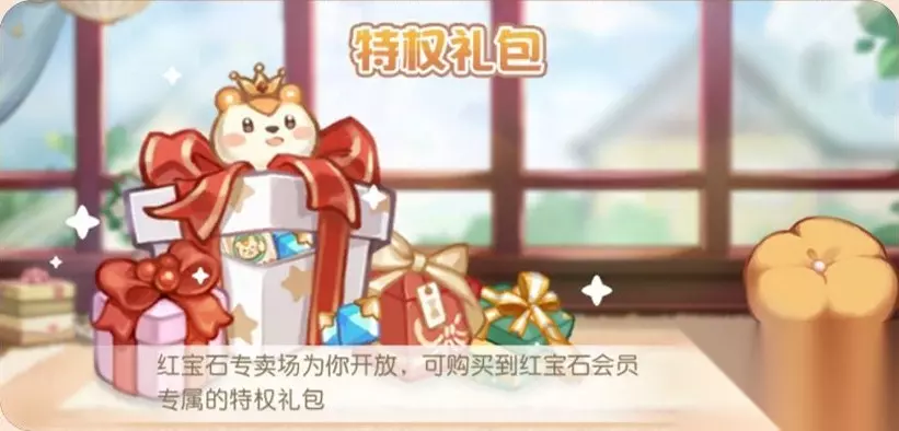 红宝石专卖场为你开放,可前往奥柏百货购买红宝石会员专属的特权礼包和特权道具。 月卡福利: