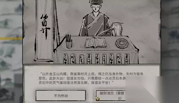 6、灵石失窃 结果:山外金玉山内藏,燕雀离时月上房。得之仍当身外物,失时方能免悲伤。 不破财消灾的话会失去更多灵石。
