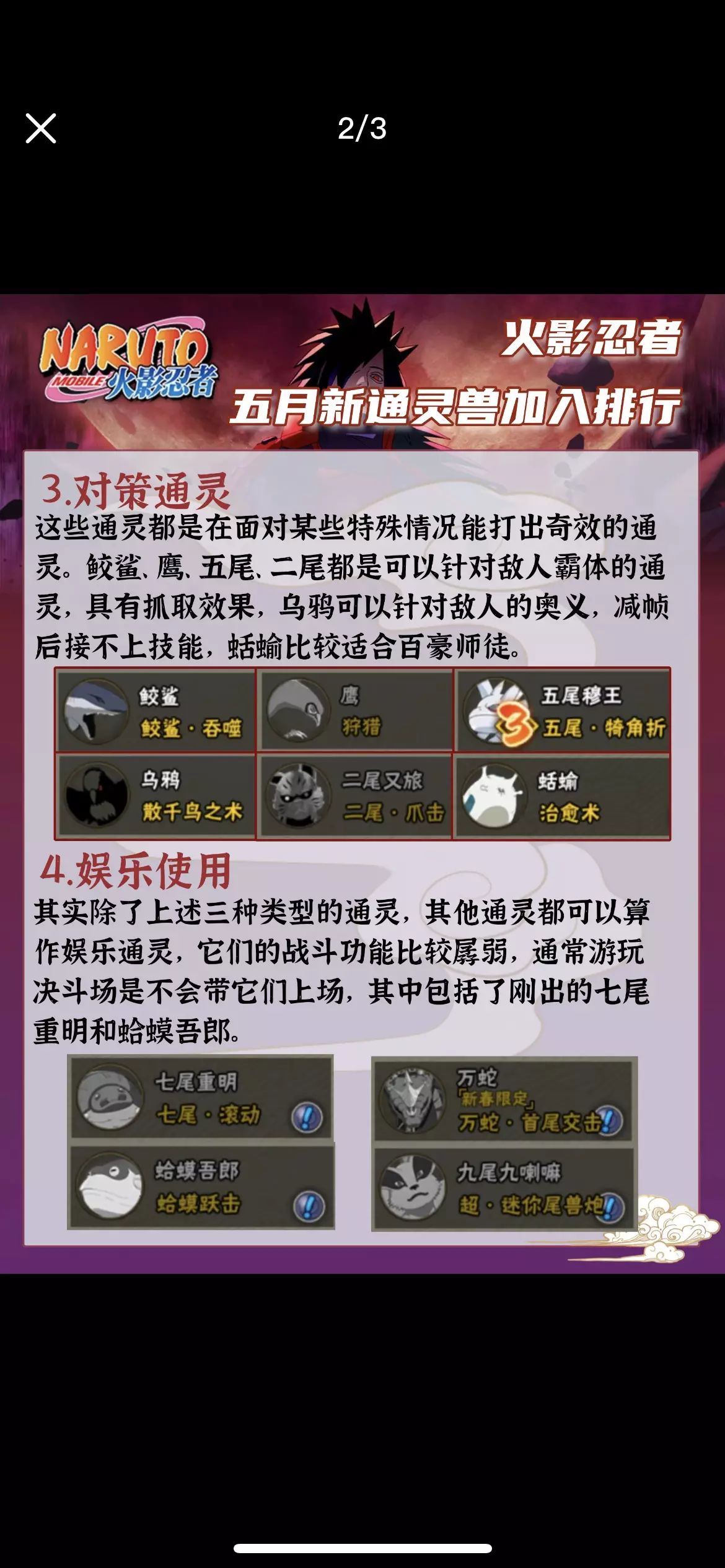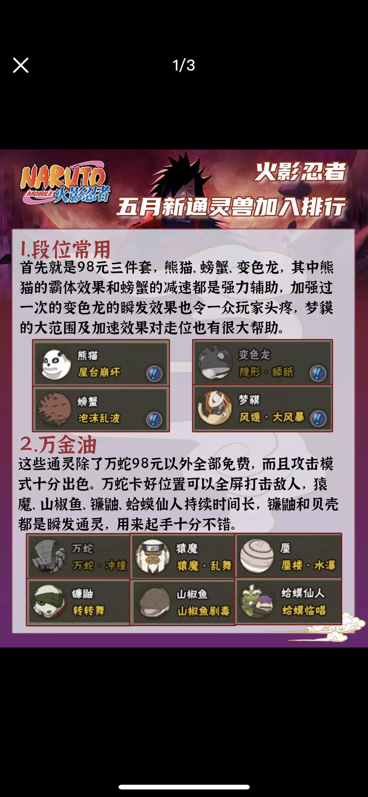 火影忍者5.15更新后新增了两个通灵兽七尾重明和蛤蟆吾郎,最新通灵兽排行榜来啦,推荐用雷电模拟器,键鼠操作不会误触! 重明是一个98元通灵兽,但是因为是七尾小时候的形态,所以更偏向于给战力玩家一套勾玉槽位,决斗场几乎不会带它,蛤蟆吾郎的攻击形态也比较偏娱乐,因此通灵兽的优先级没有改变。 💥段位常用:首先就是98元三件套,熊猫、螃蟹、变色龙,它们三个都是瞬发且辅助功能顶尖,梦貘的大范围及加速效果对走位也有很大帮助。 ▶万金油:这些通灵模式十分出色。万蛇卡好位置可以全屏打击敌人,猿魔、山椒鱼、镰鼬、蛤蟆仙人持续时间长,镰鼬和贝壳都是瞬发通灵,用来起手十分不错。 🎯对策通灵:这些通灵是在面对某些特殊情况能打出奇效的通灵。鲛鲨、鹰、五尾、二尾都是可以针对敌人霸体的通灵,具有抓取效果,乌鸦可以针对敌人的奥义,减帧后接不上技能,蛞蝓比较适合百豪师徒。 📱娱乐使用:除了上述三种类型的通灵,其他通灵都可以算作娱乐通灵,它们的战斗功能比较孱弱,通常游玩决斗场是不会带它们上场,其中包括了刚出的七尾重明和蛤蟆吾郎。 🚀 极燃推荐 🚀 💥 火影忍者手游5.15更新后新增两个新通灵,雷电模拟器强势助力! ▶️ 大屏畅玩,操作流畅如行云流水,画面细腻到每一根发丝,战斗沉浸感爆棚! 🎯 辅助工具新增“轻松助手”功能,支持一键日常、周胜和要塞玩法! 🖥️ 240帧完美呈现,九尾查克拉外溢、影分身术分毫不差,视觉盛宴震撼来袭! #火影忍者 #火影忍者更新 #火影忍者新增通灵兽 #火影忍者模拟器 #火影忍者电脑版 #火影忍者大更新 #火影忍者攻略