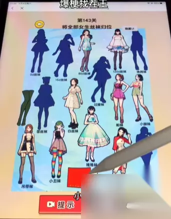 《爆梗找茬王》女生丝袜通关攻略 女生丝袜 通关目标:将全部女生丝袜归位 攻略: 1、点击屏幕下方的红色按钮,每点击一次都会出现一个女生的丝袜。