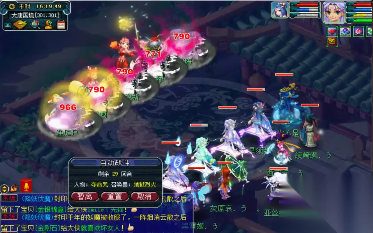 在龙王出现后第二次去找阿盘对话,然后去和龙王对一次话,根据指引去盘丝岭区域找春十三娘,与之对完话之后在该区域找四个盘丝岭的弟子对话,这些弟子的坐标是随便刷新的可能需要找找,在和弟子对话的时候有几率触发战斗,战斗只有一个怪非常容易打。完成弟子对话任务第二次找十三娘对话,接着就会触发与十三娘的战斗,战斗场景中的两个有人物模型的角色不能杀死,只打他们周围的小怪即可,两个人物会自动互相攻击,不能主动杀死否则任务就会失败。
