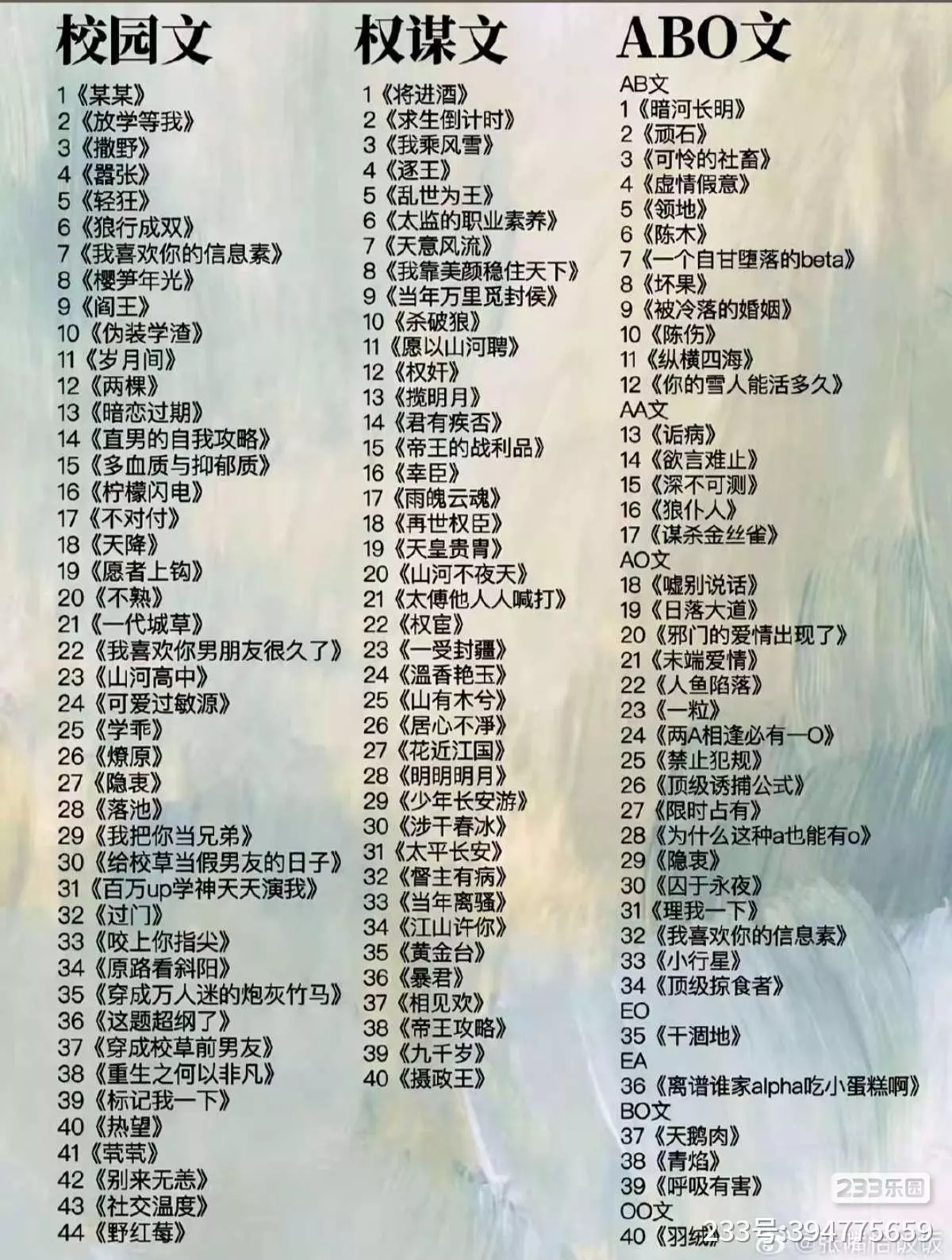 不管是言情、原耽、 be、 he、骨科(伪)、韩漫、百合、校园、权谋、 ABO、娱乐圈、电竞网文、末世