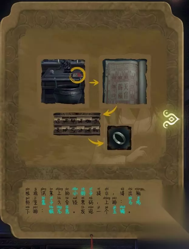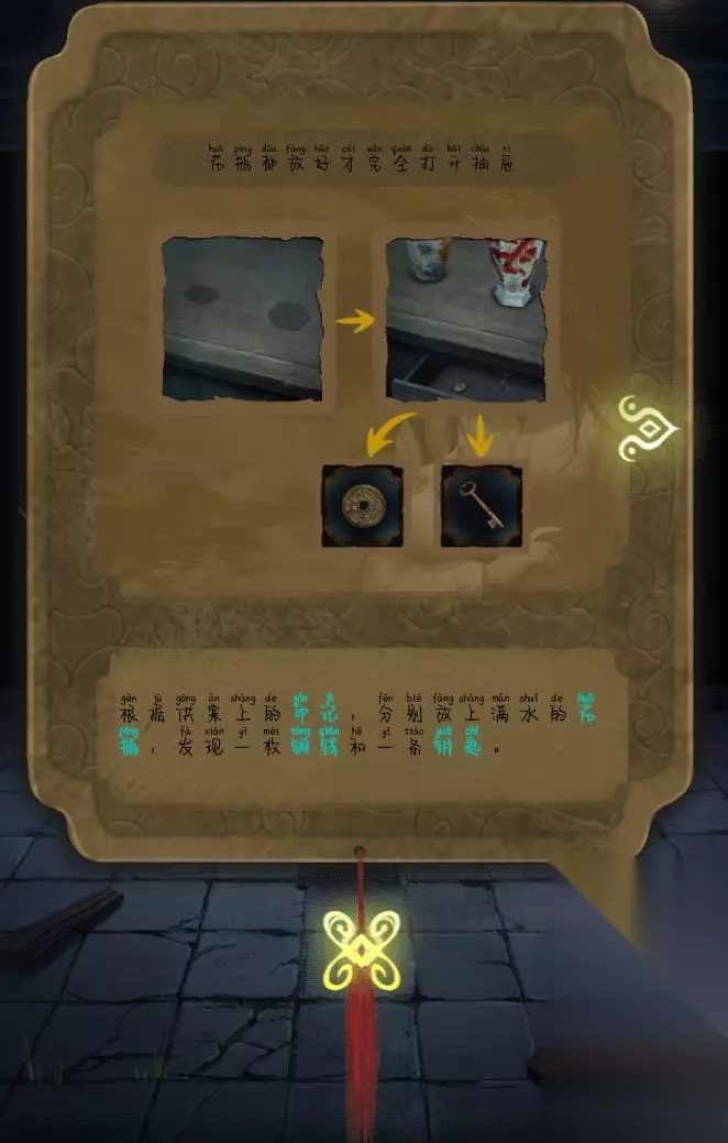 t15_2-t15_1:6.0 标签: 花瓶 隐秘的怪谈猫女之夏第五章通关攻略带给大家,这是很多小伙伴都还不知道的,大家好不容易来到了第五章,但是不知道这个第五章具体应该怎么过,现在233乐园游戏小编就带给大家相关攻略,大家看完就知道第五章的具体过法了。 第五章通关攻略 1.首先先去四趟门口完成拼图,然后点亮灯笼,发现上面有一块勾玉。