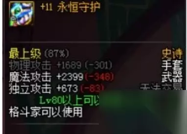 在dnf中男气功搭配可以选择野古手套可以最高增加62%的伤害,然后就是永恒守护者,可以大幅度的提高我们的攻击次数,最后就是拳风传奇它不仅伤害高还有多种属性的加成。 dnf男气功用什么武器 1、首先就是野古手套,这虽然是一把被广大玩家们认为的过时的武器,但是玩家们在升级过后,就可以仍然展现出强大的威力。 ps:如果玩家们开启魔法后就可以增加35%的技能攻击伤害,其中伤害最高能达到62%。这款装备的实战表现还是非常的出色。 2、然后就是永恒守护者与拳风传奇 永恒守护者武器:当玩家们的等级升至十一级的时候,我们的魔法攻击次数最高可以达到2400,其中我们的独立攻击次数也可以达到接近700的次数。