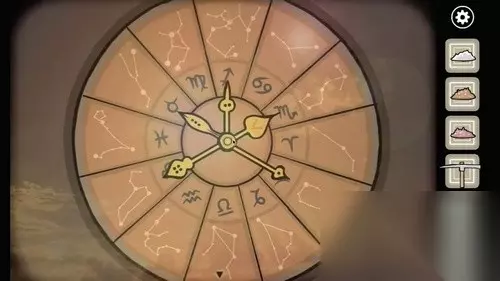 12、到密室一楼,在星座盘上将指针按照金牛座、双子座、天蝎座、白羊座、天秤座的顺序旋转,得到一把钥匙