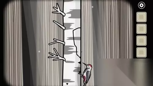 4、出密室到左侧小路,查看右侧的啄木鸟,按照树枝分叉数量,顺序为2314,得到一块棕色树皮