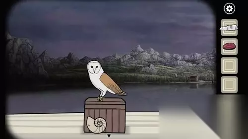 7、到木门后调查左边的猫头鹰,拿走白色贝壳