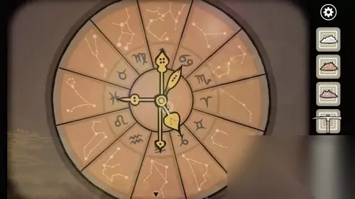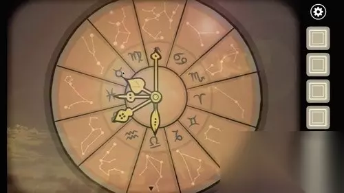 2、进入密室一楼,在星座盘上将指针按照射手座、双鱼座、天秤座、狮子座、金牛座的顺序旋转,得到一把钥匙