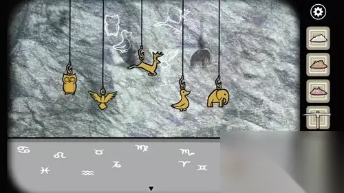 15、爬上楼梯来到密室二楼,用蜡烛照射挂饰让影子和墙上的形状对齐,星座依次是天蝎座、双鱼座、双子座、射手座、摩羯座