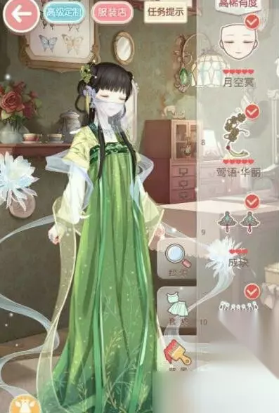 具体搭配如下: 妆颜:月空冥 头发:杨柳·华丽 连衣裙:绿烟林微 外套:月秋浦 袜子:月涟漪、兰情·珍稀 饰品:月光石、月石链、雀环、雀屏、月香缈、莺语·华丽、成?、月千重 以上就是奇迹暖暖七夕活动任务攻略 心愿委托高分搭配攻略更多攻略敬请关注游戏鸟手游网。