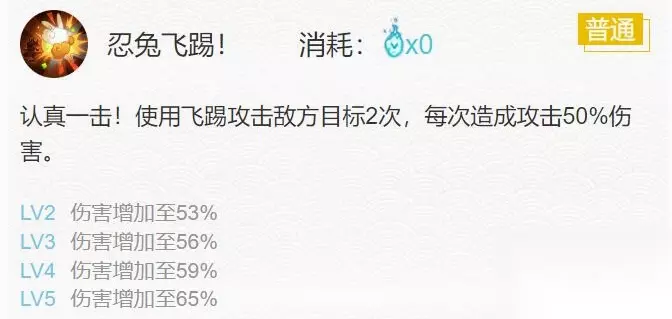 式神技能介绍: 技能一:忍兔飞踢!(0火)