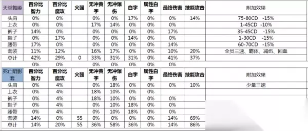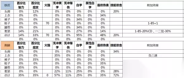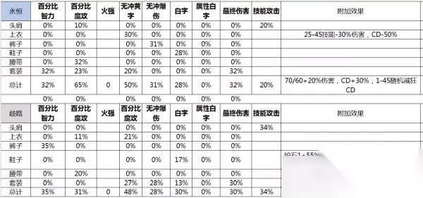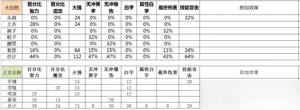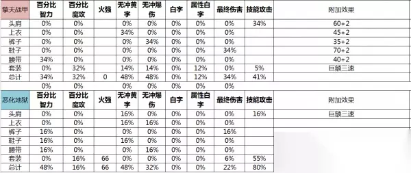 接下来为简单的防具属性表格,没有耐心看套装属性的可以直接拉到最后看对比强度以及建议