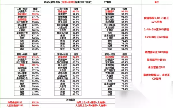 4、防具部分 首先给出搭配强度图,强度数值越高越好,标红为推荐选择(图片限制请点击放大观看)