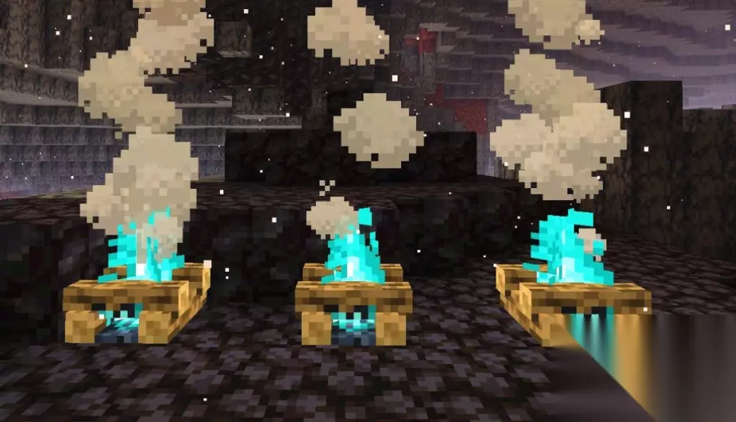 篝火发出的光亮能帮助自身在黑暗中看清周围环境,在夜晚或洞穴中非常有用。此外篝火冒出的烟雾可以被远处看到,起到信号作用,要是想标记自己的房子或营地位置,可以在房屋附近放置篝火,这样在远处就能根据黑烟找到返回的路。要是烟雾太大影响美观,可以在篝火上方放置方块来阻挡烟雾,用于建筑装饰或制造小型火山效果。