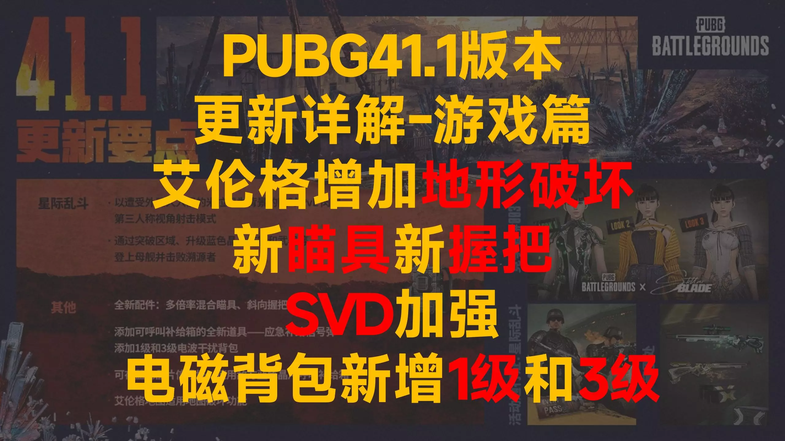 这是绝地求生41.1版本的枪械配件更新介绍,半截握把获得+16%水平后坐加成的史诗级加强,三角握把因定位与多握把重叠被永久删除,还新增了拥有+25%开火抖动控制的斜向握把。