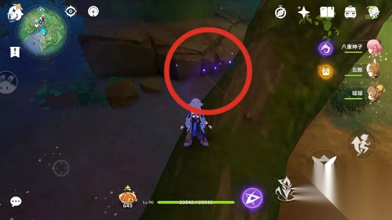 石板上面有一个 注:接下来的一段地图是要做完稻妻世界任务「神樱大祓」才能开启! 接上图,往左边走,跳下去,进洞