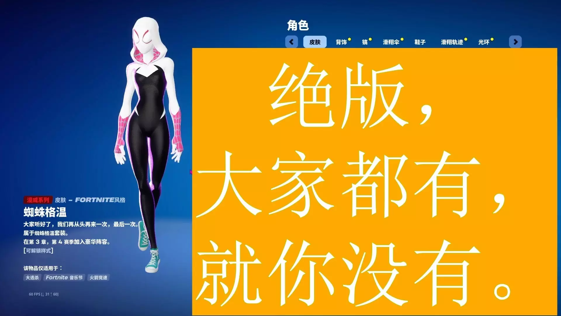堡垒之夜Fortnite,漫威蜘蛛格温(绝版,大家都有,就你没有),手柄(xbox普通手柄),青铜排位,20260322,