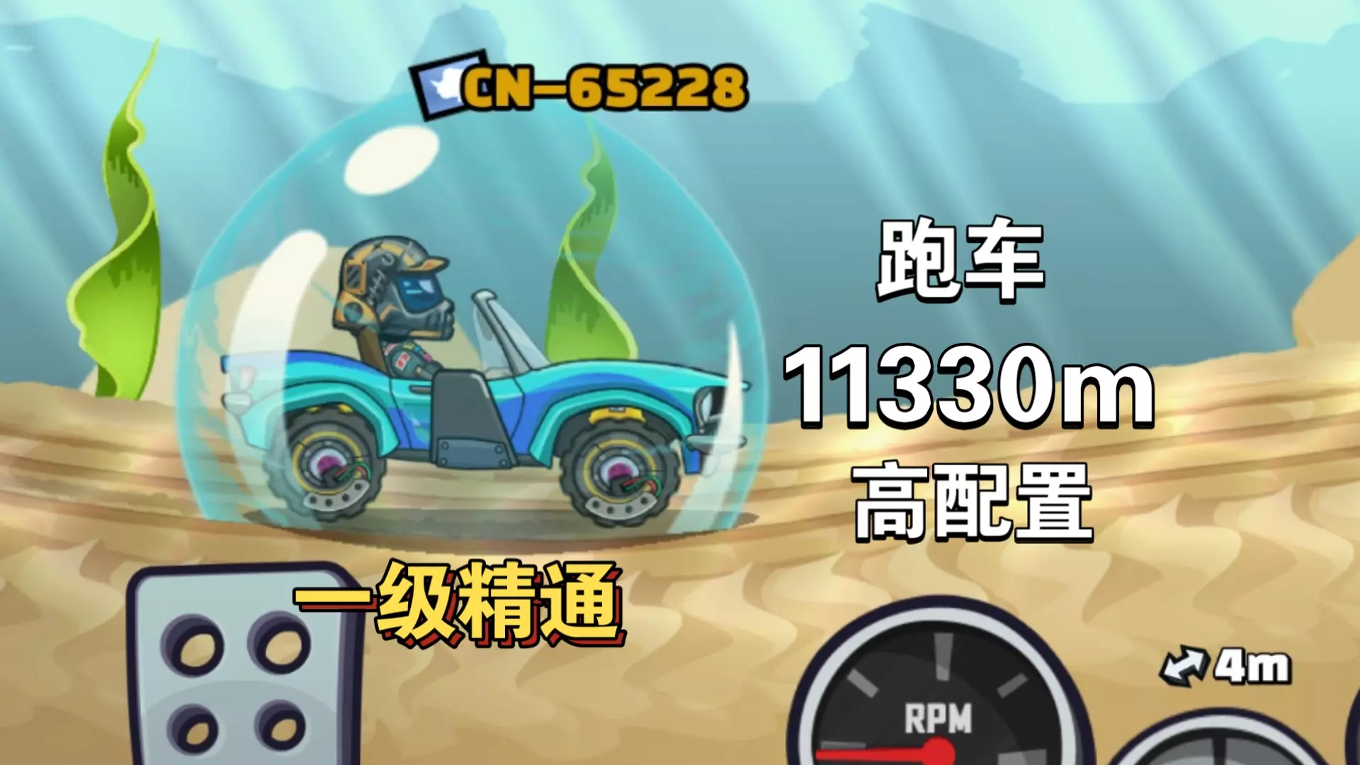 这是《登山赛车2》的游戏内容,玩家使用低配置的全地形车,在海底赛道中行驶,最终达成了10776m的成绩,过程中借助抓钩道具应对海底复杂地形。