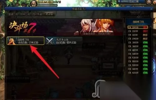 3、接到任务后我们将自己的游戏频道切换到游戏中的自由练习场。