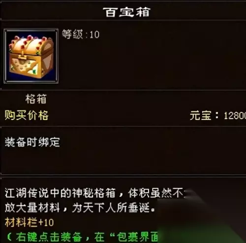 说起天龙江湖的包裹,不少生活玩家表示那真的是多大的背囊都不够用! 其实在背包扩充和宝宝肉叠加之前,没有十格来扩充背包,那真的是一天要跑回城好几天,清理背包也是个头疼的问题。