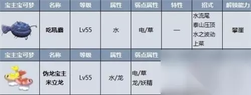 4、伪龙宝主-吃吼霸&米立龙 等级:Lv45-48 属性:吃吼霸(水)、米立龙(水/龙) 解锁坐骑招式:攀崖