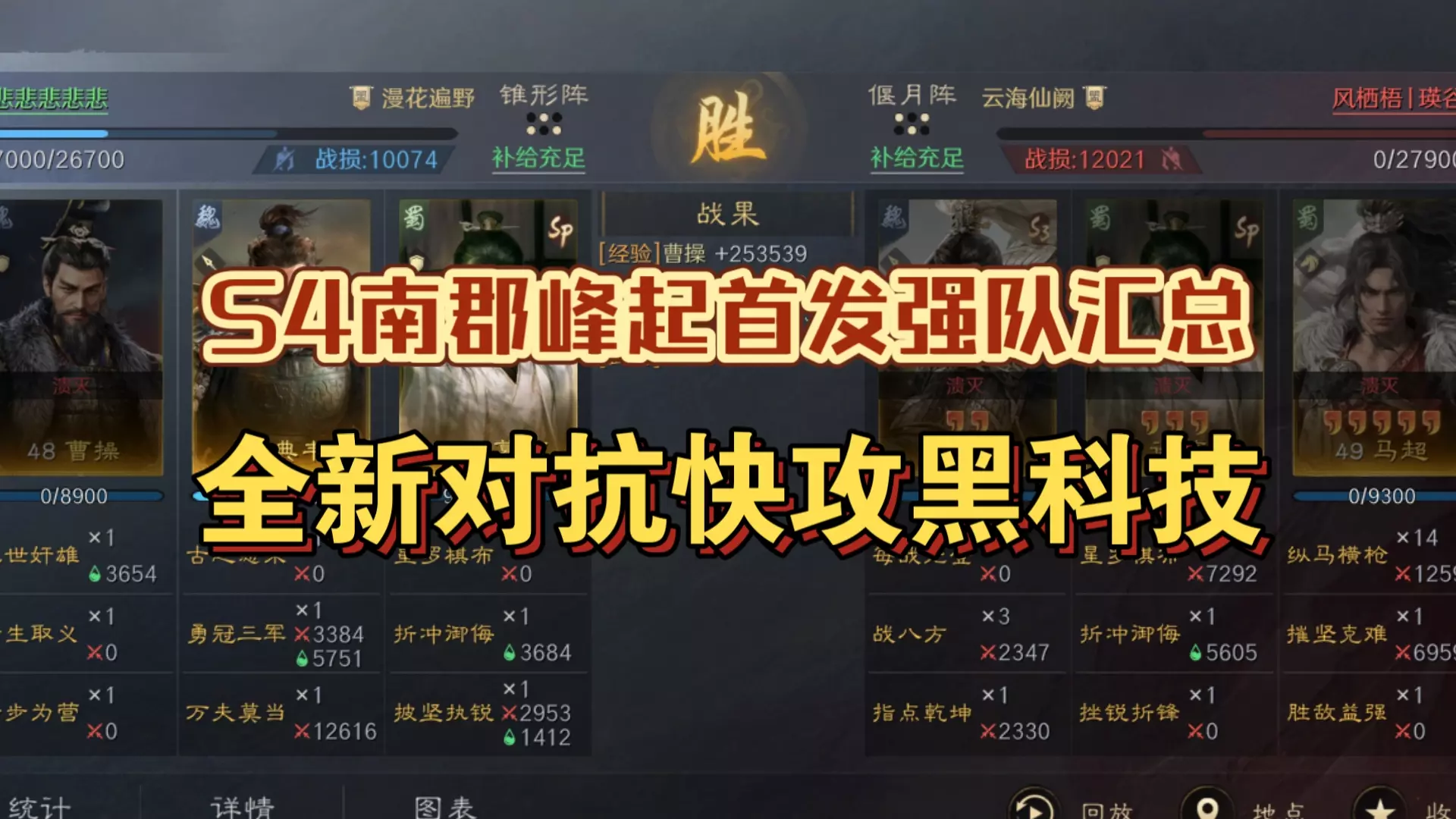 这是《三国:谋定天下》的兴汉讨逆六队共存方案分享,展示了全红、高满红的六队武将搭配、战法及兵书配置,魏延队伍表现亮眼,实战中打快攻表现出色,还提及另有全赛季可用队伍将在下期视频发布。