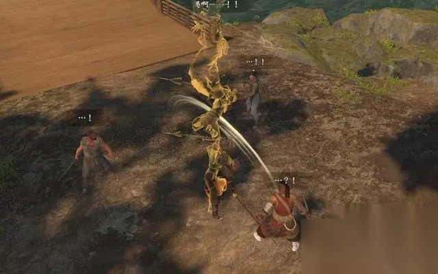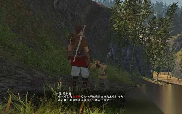 在进入大研镇之前,会遇到6个山贼的内部争斗, 白衣男子试图脱离贼窝,而其余五个哥们则不同意, 于是,这些人一言不合就打起来了。 你可以选择帮忙白衣男子,不过这些人战斗力较强,没有20级是很难打过的。