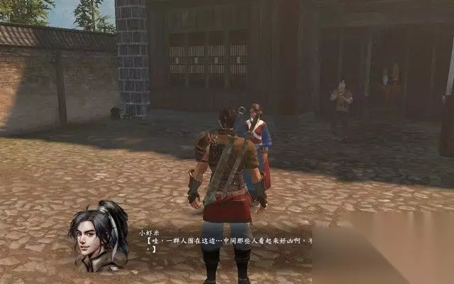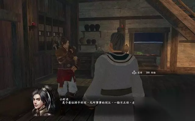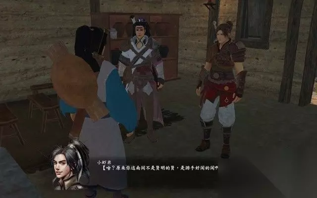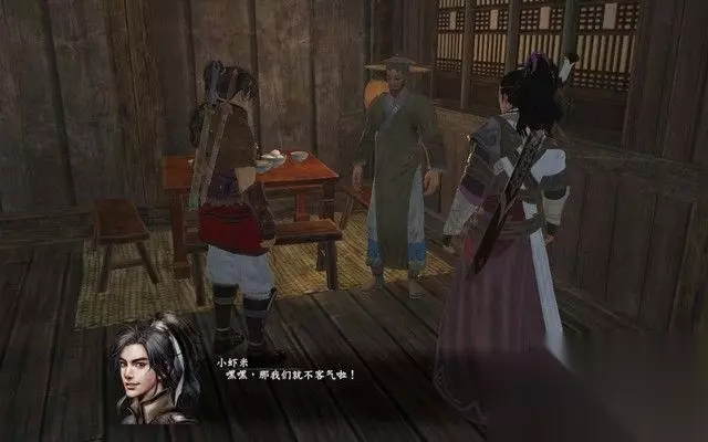 步骤6: 进入酒馆之后,里面有师兄妹两人在谈论一个大盗, 不料,他们和旁边的一个姓徐的酒客发生口角,随即进入战斗。 后来,可以知道,这个酒客就是徐霞客。: