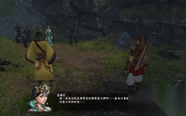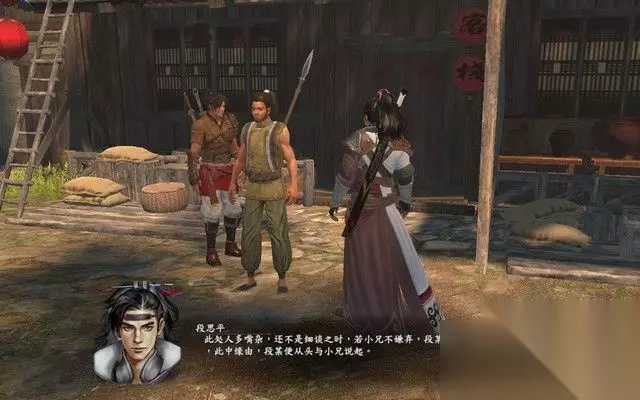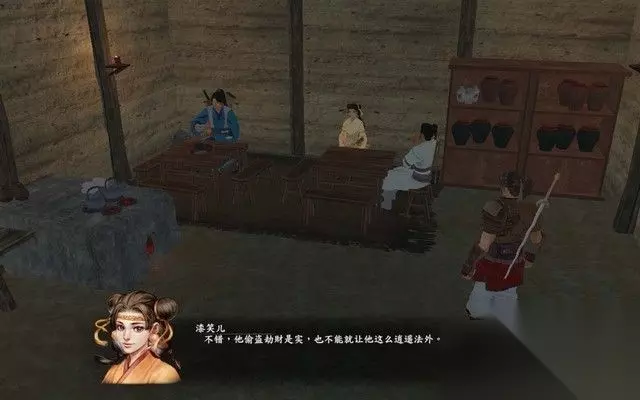 出茶楼之后,触发剧情,一群强盗试图欺负良家妇女, 正当他们胡作非为之时,木府二爷出现,将这些坏人一击杀死, 看来,又一个正义的少侠出场了。