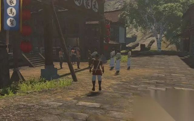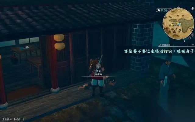 然后沿着路一直走,触发剧情,到前面这个酒馆里面。 就是这个门口挂着灯笼的酒馆。