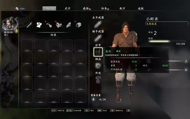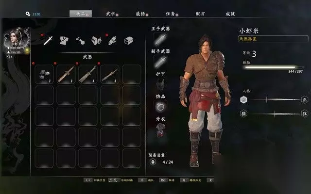 按TAB进入装备界面,点击武器即可将其配备到武器栏中, 除了拳法之外,只有装备了武器,才能在战斗中使用相应的招式。