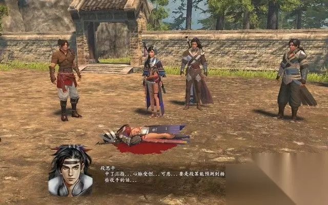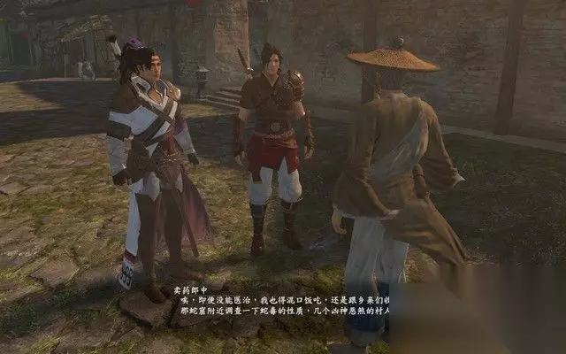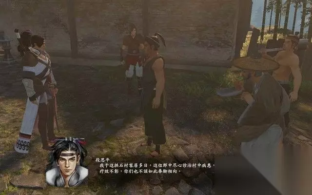 步骤3: 出去之后,你看见几个村民正在找郎中的麻烦,由于郎中没有治好蛇毒, 村民将罪责归咎于郎中,并以武力威胁郎中,突然,一个叫段思平的少侠出手, 而村里则将一旁吃瓜的你当做了同伙,随即进入战斗。